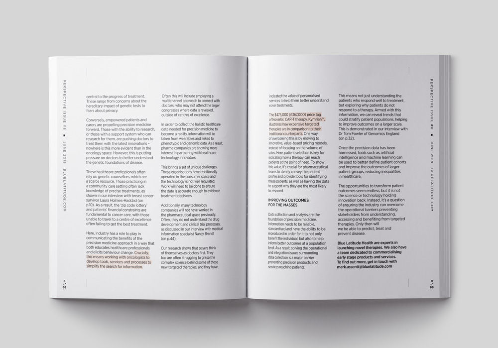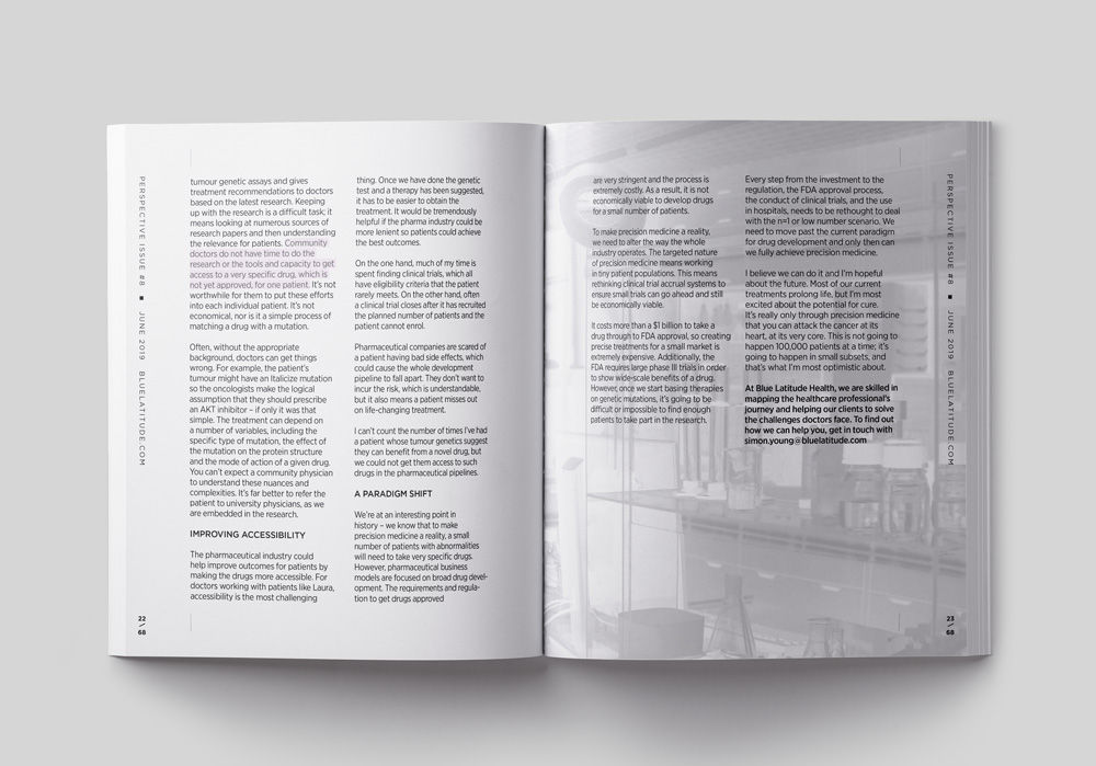 Taking cues from independent zines in the lifestyle, culture and literary sector, a renewed editorial and design direction gave voice to key opinion leaders in the pharmaceutical industry. Issued online and via direct mail, the publication uses illustrative motifs and image-led storytelling to give complex topics pace and clarity. This novel approach humanised scientific narratives through informal interview formats and bold styling. The result is a clear, credible platform that elevates expertise, sustains attention and creates clear paths to enquiry, reinforcing client relationships and supporting new business.